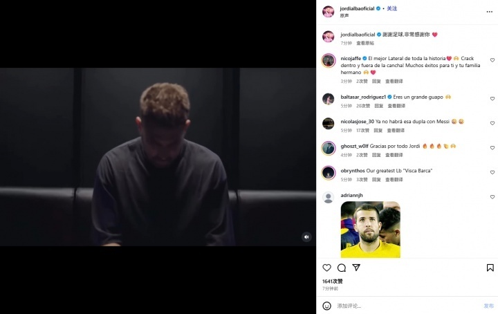 周二,效力于迈阿密国际的传奇巴萨边后卫阿尔巴通过社交媒体宣布将在赛季结束之后退役。在视频中,阿尔巴宣布了自己的决定,并且表示,“感谢足球”。